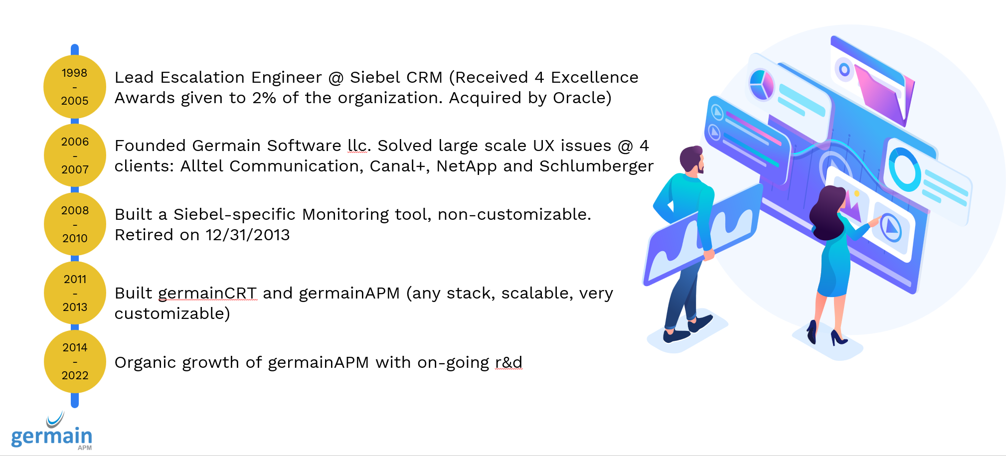 2021 has been our biggest year of growth since our launch in 2014. This is largely because of teams and departments—like IT Dev, DevOps, Ops, UX, User Support, Business, Customer Loyalty, and Sales and Marketing—using Germain more than ever before. As the Germain platform has grown, so has our support team, which is a key component of our success. When clients use Germain, they not only benefit from a very customizable platform, but also from ongoing help with configuration, insights, and business problems.
