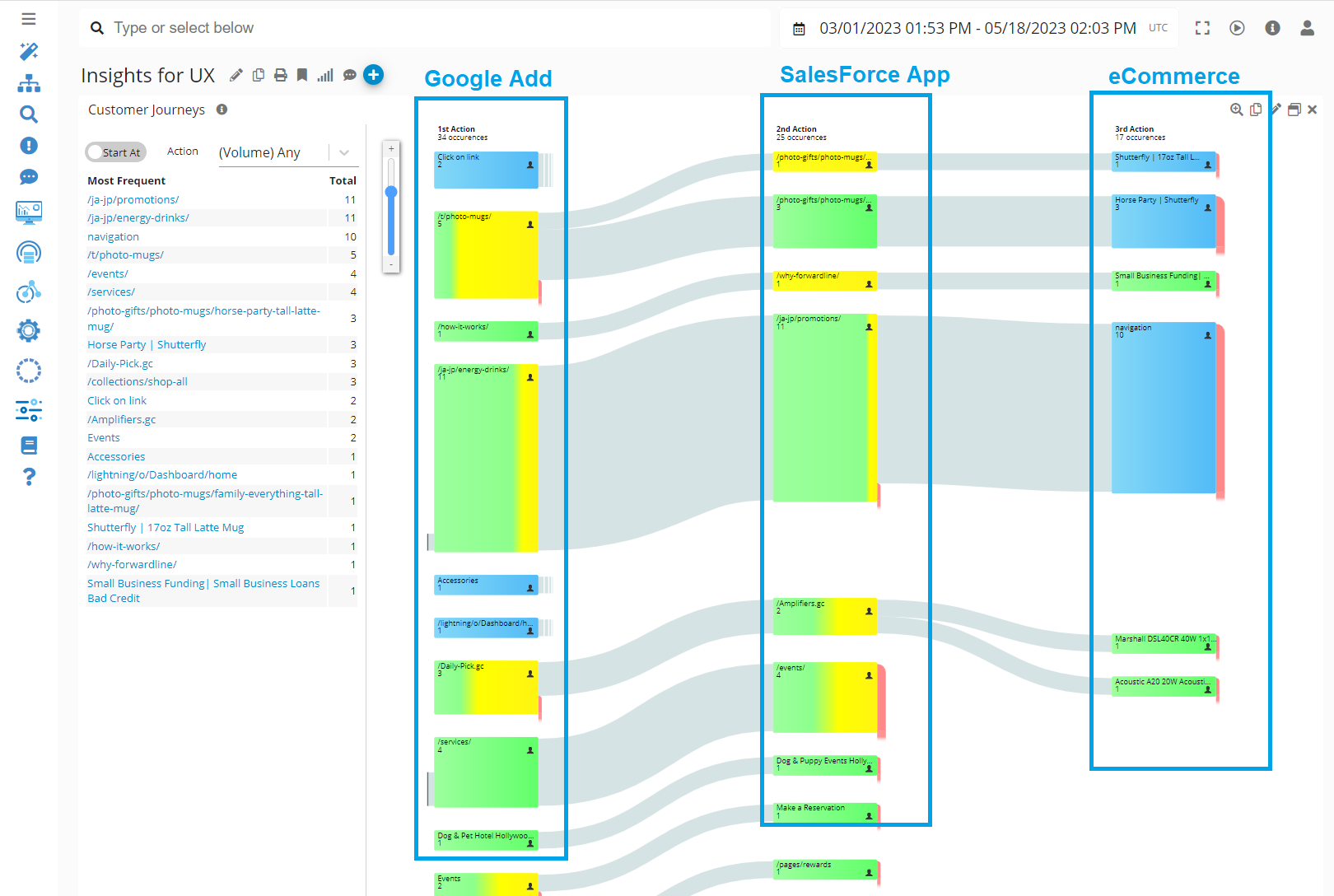 Flow Graph Display for Comprehensive Customer Journey