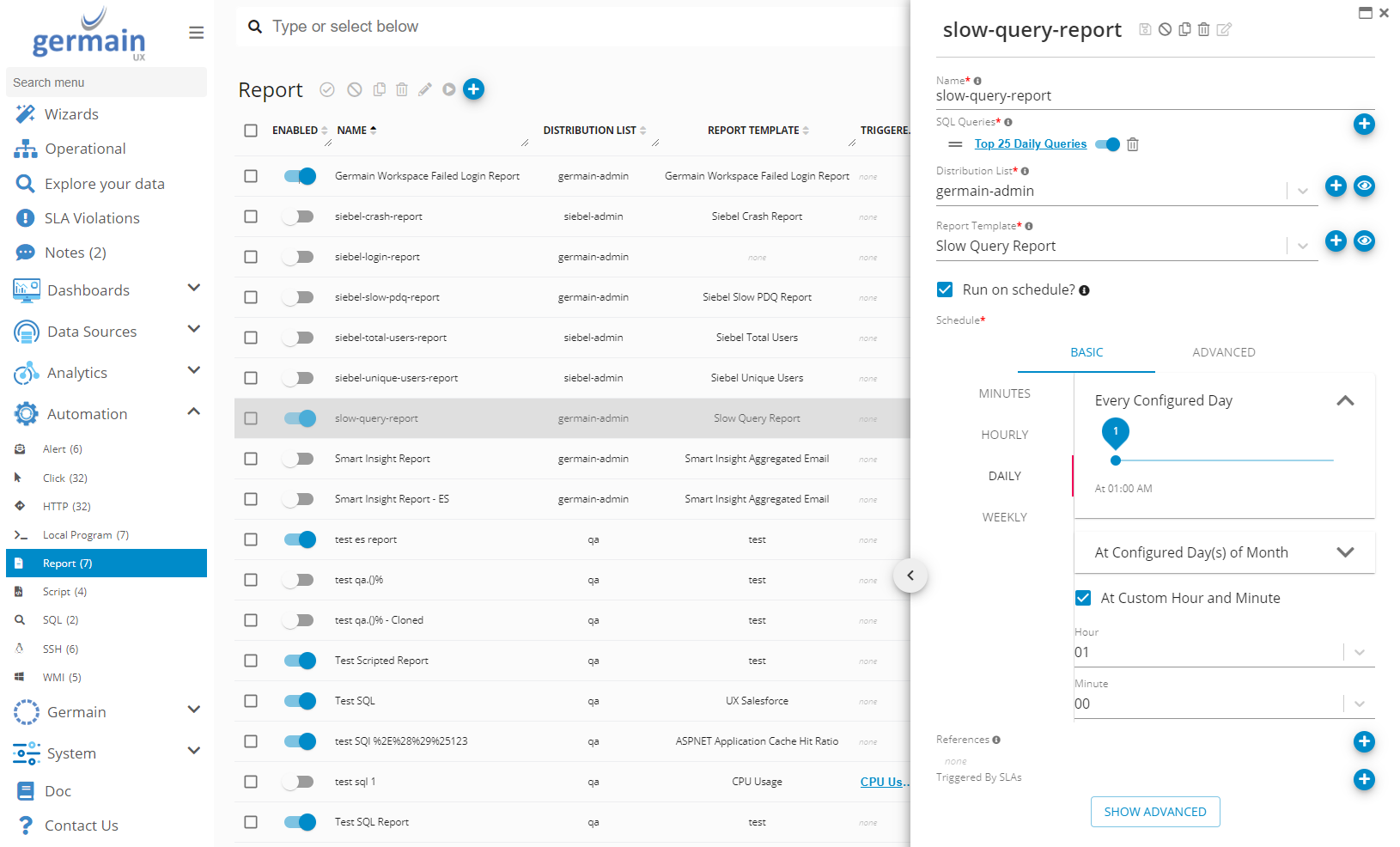 The Report Dashboard is now accessible to facilitate the management of Automated Reports.