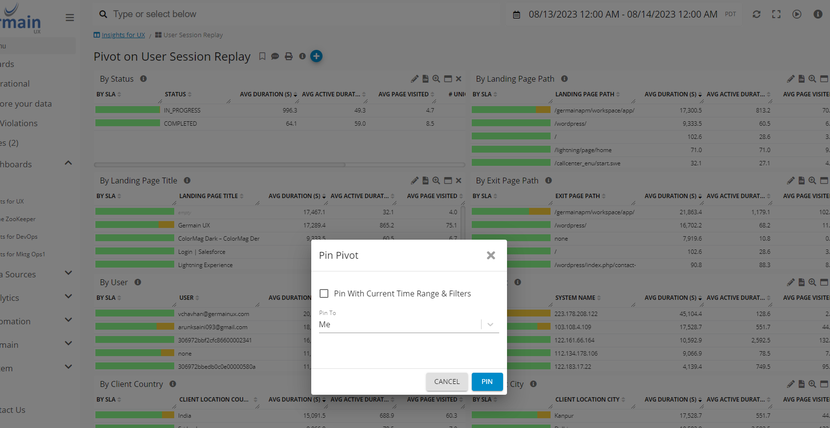 Backward and Forward User Session Replay RCA Dashboard- Germain UX
