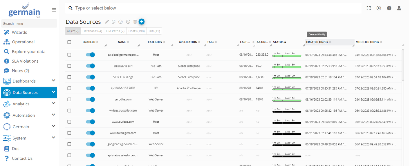 A series of enhancements has been implemented to facilitate the management of data sources in Germain UX.