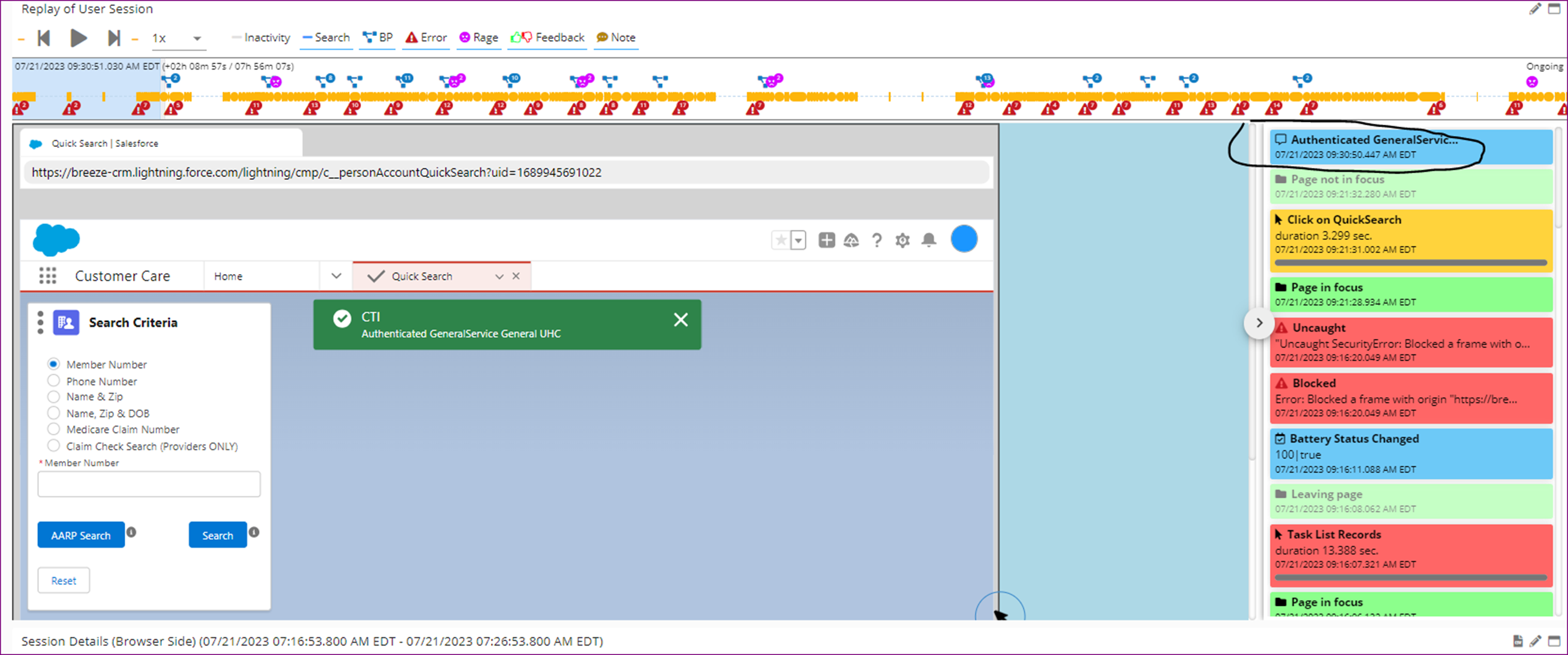 Incoming authenticated call on SFDC captured and replayed on Germain UX