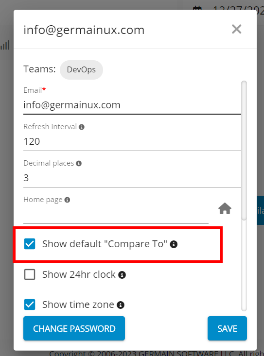 Note: The 'Compare to' feature is enabled by default for all users but can be easily configured via profile settings.