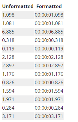 Here is further information on how to implement automatic formatting of duration values for alerts or reports:https://docs.germainux.com/main/templates#Templates(AlertsorReports)-Tables.