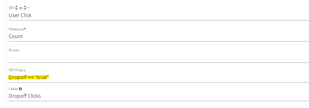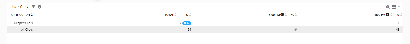 With the introduction of the new "Dropoff" field as a filter criteria on the User Click KPI, users gain the ability to analyze drop-off behavior across various portlets, such as the Table portlet. This enhancement facilitates diverse analyses, offering similar pivots and drilldown options for deeper insights into user behavior and interaction patterns.