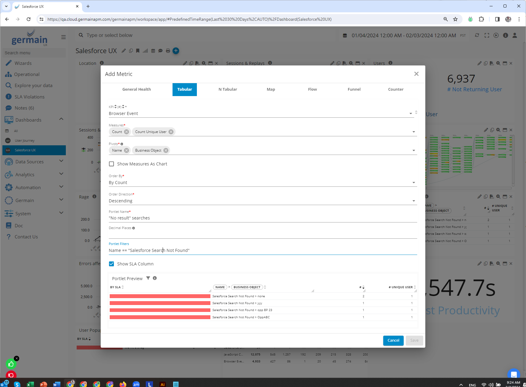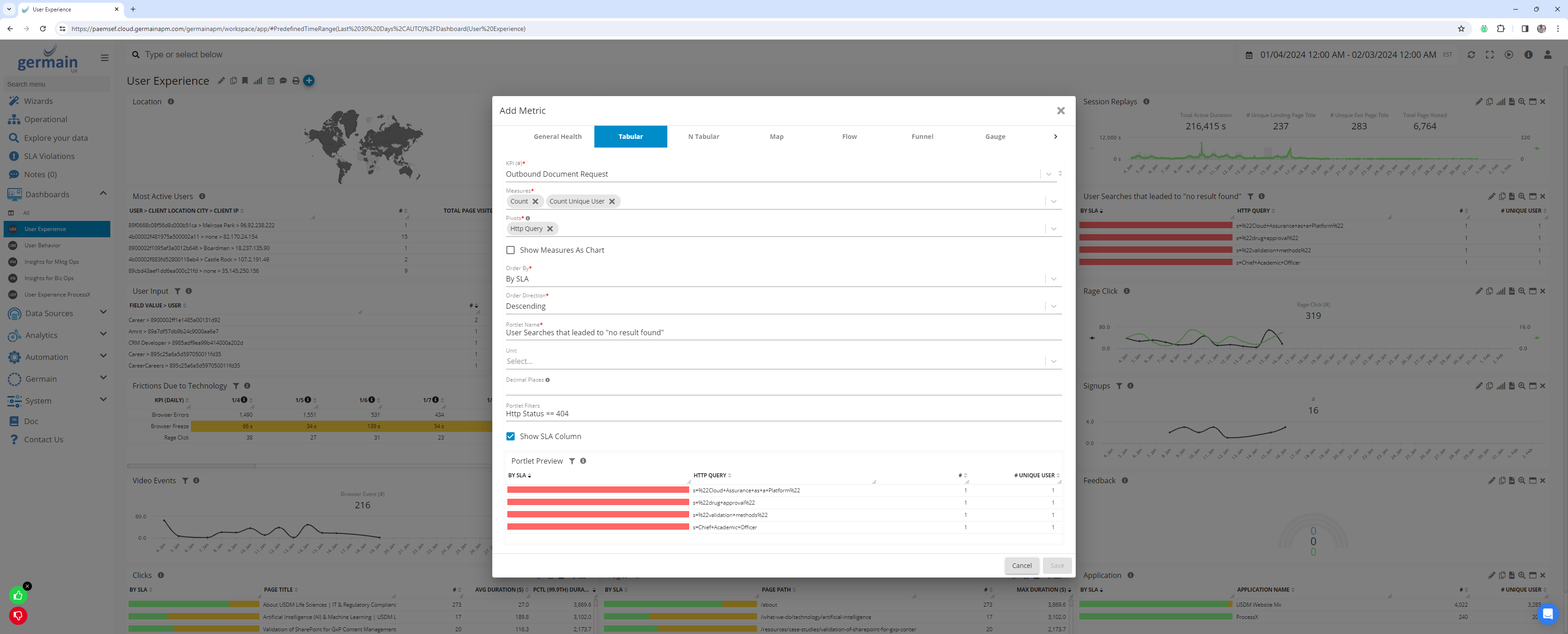 Before this enhancement, while Germain was capable of detecting unsuccessful searches, there weren't specific "No Search Results" key performance indicators (KPIs) available. Instead, customers had to manually navigate through GermainUX data using metrics such as "Browser Event" or "Outbound Document Request" to identify instances where users failed to find what they were looking for.