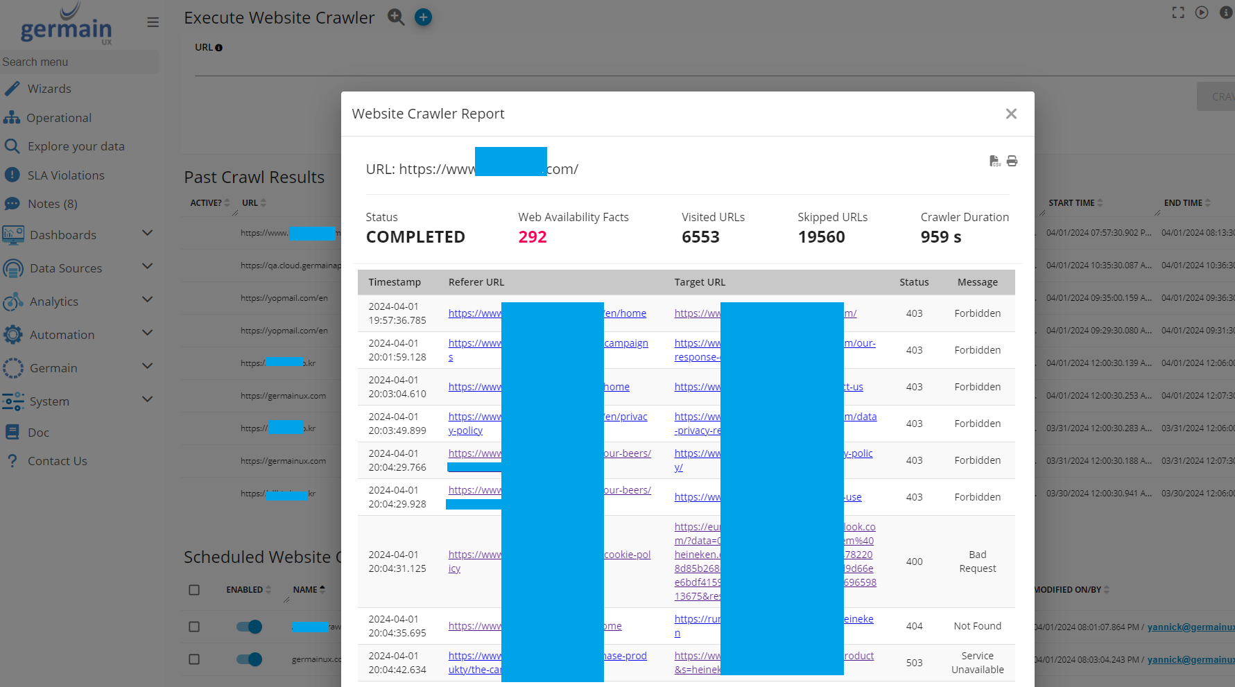 Germain UX now includes the capability to crawl websites, enabling the identification of various issues to enhance website performance and user experience. These issues include: