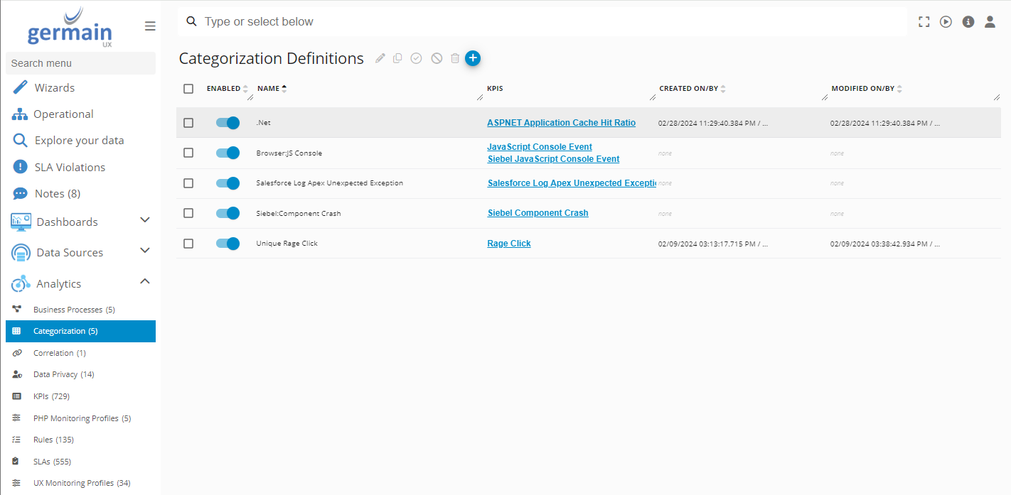 .Net Categorization enabled - Germain UX