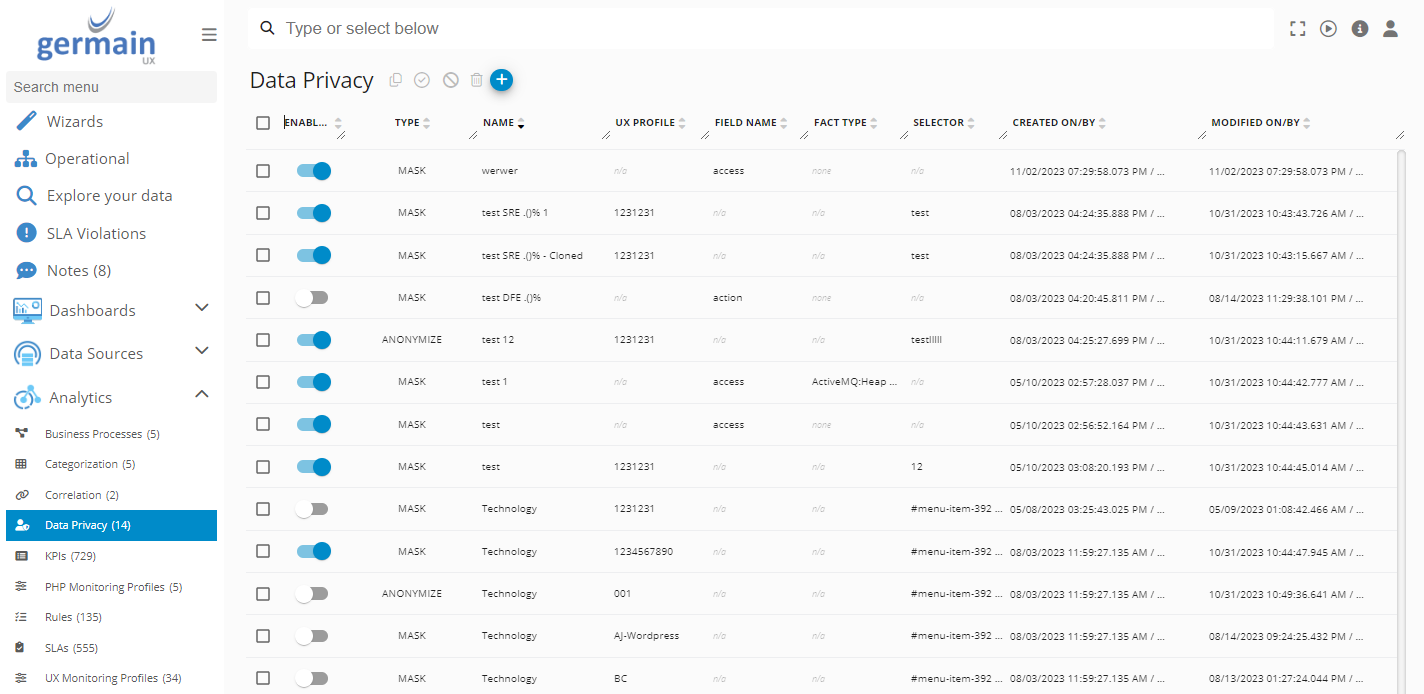 Data Privacy configured - Germain UX