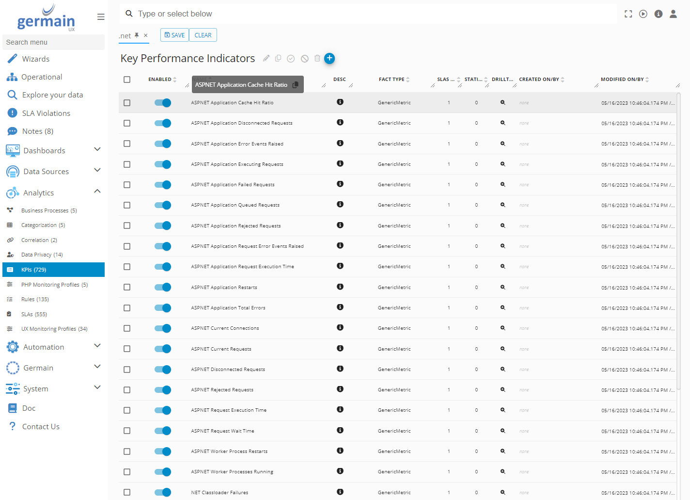 .NET KPIs enabled - Germain UX