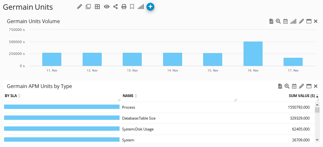 The 'Germain Unit' dashboard reports on AA Unit usage, similar to this one: