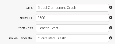 Key Expression – an MVEL expression that will generate a key for this correlation scenario from a raw data point. In this example, the key is comprised of server name and process ID, but other values are possible as well (ex: session ID). Any raw facts that share the same key value will be correlated.