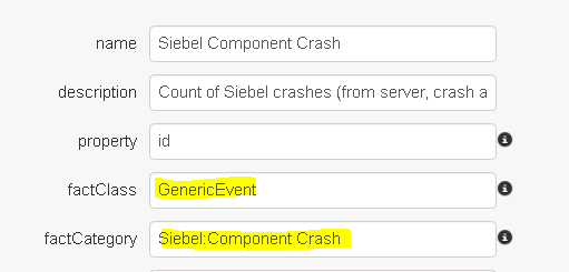 In this example, there are 3 Siebel crash data types that are collected by Germain. Any data point that matches either of the KPIs will be included by the correlation service as part of this scenario