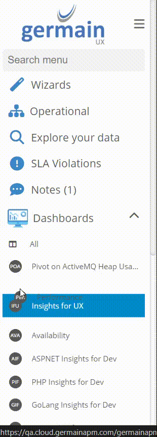 Log on to Germain Workspace > Left Menu > Dashboards > All