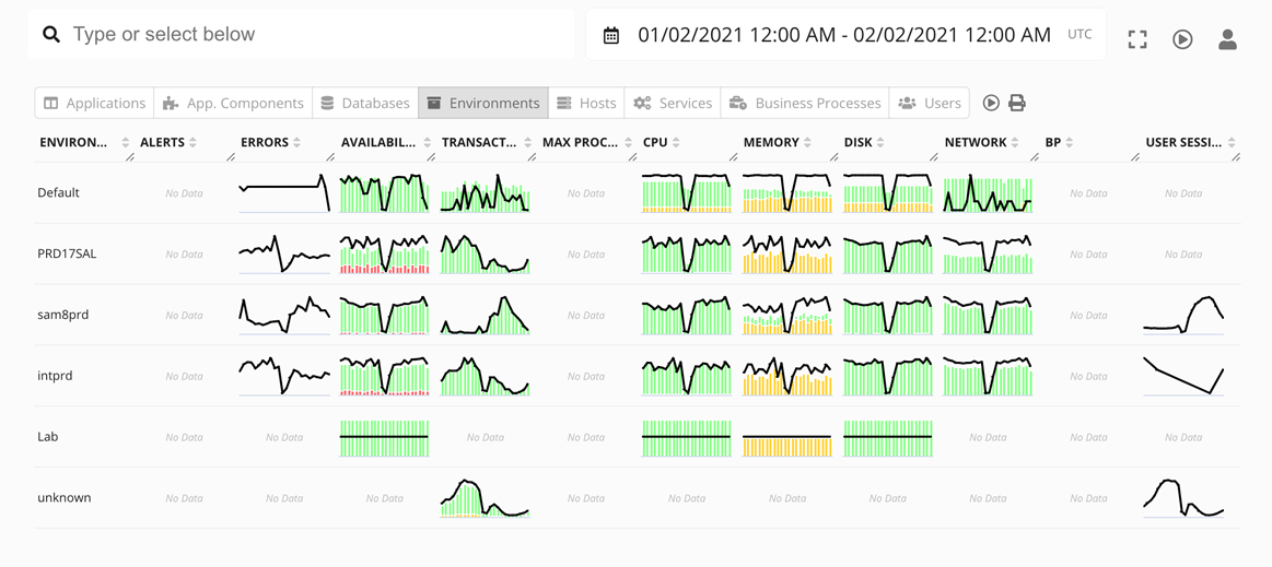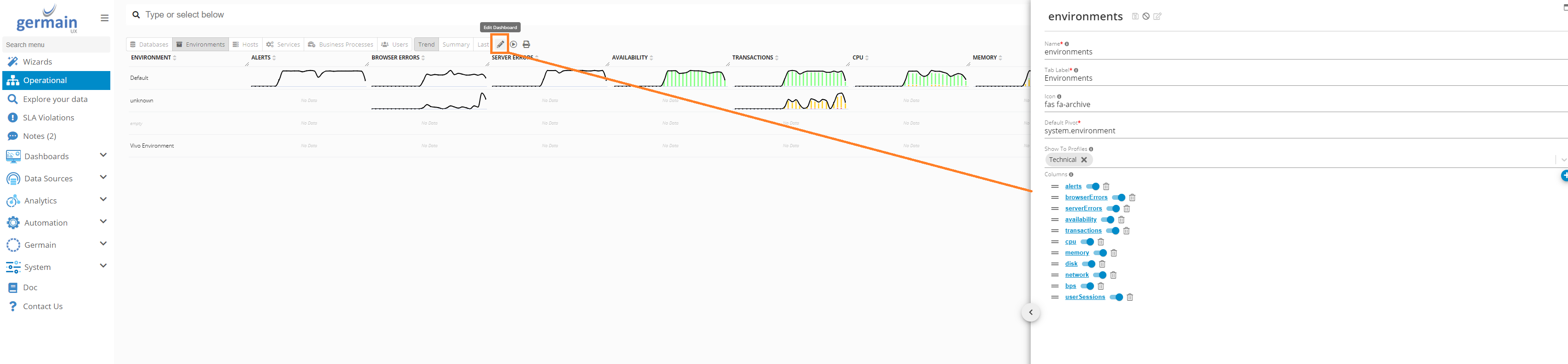 Environment View of Operational Dashboard - Germain UX