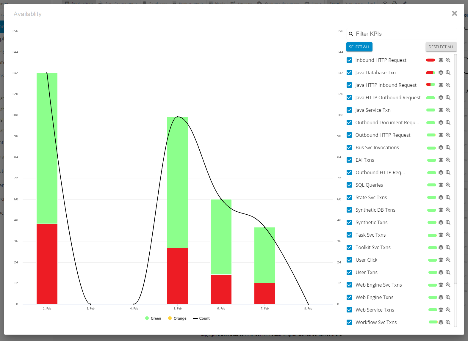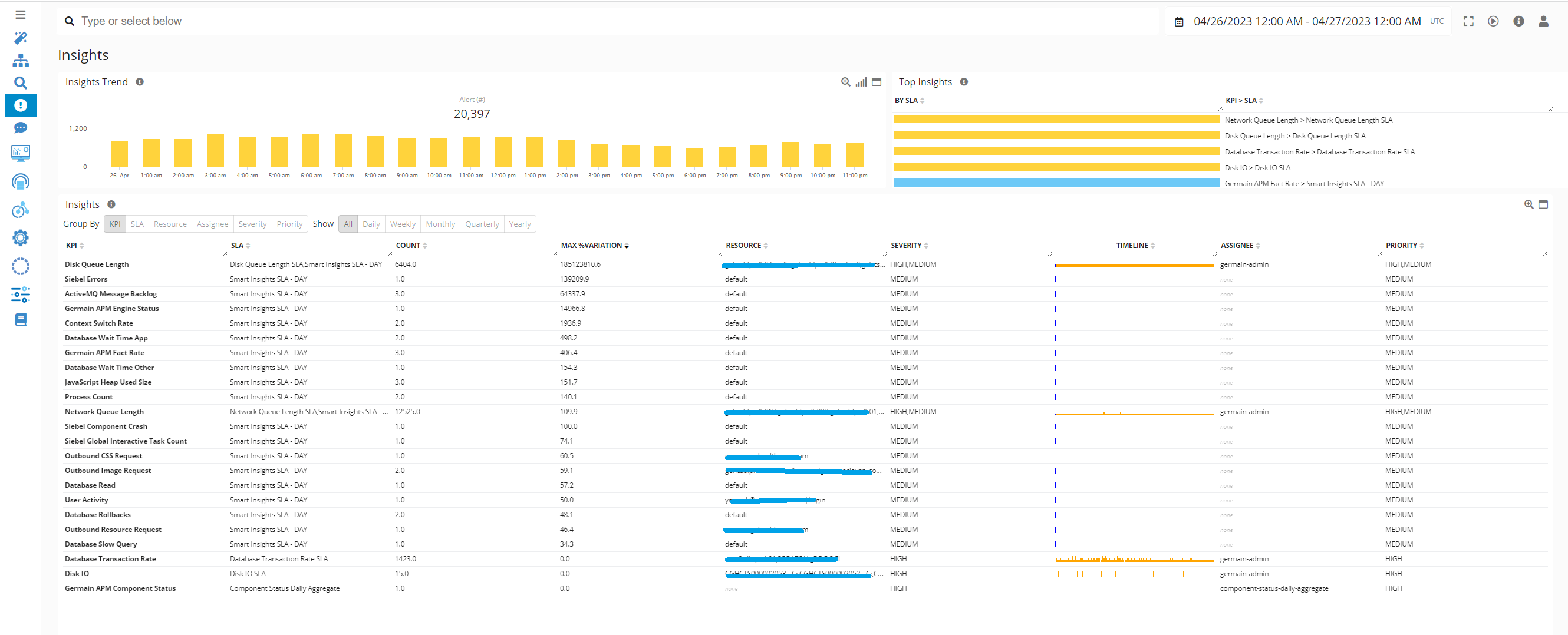 Germain provides a powerful feature called Aggregate View/Dashboard that serves as a starting point for data analysis. This feature allows users to gather and visualize relevant data in a consolidated view and drilldown into 3 other levels to allow further diagnosis.