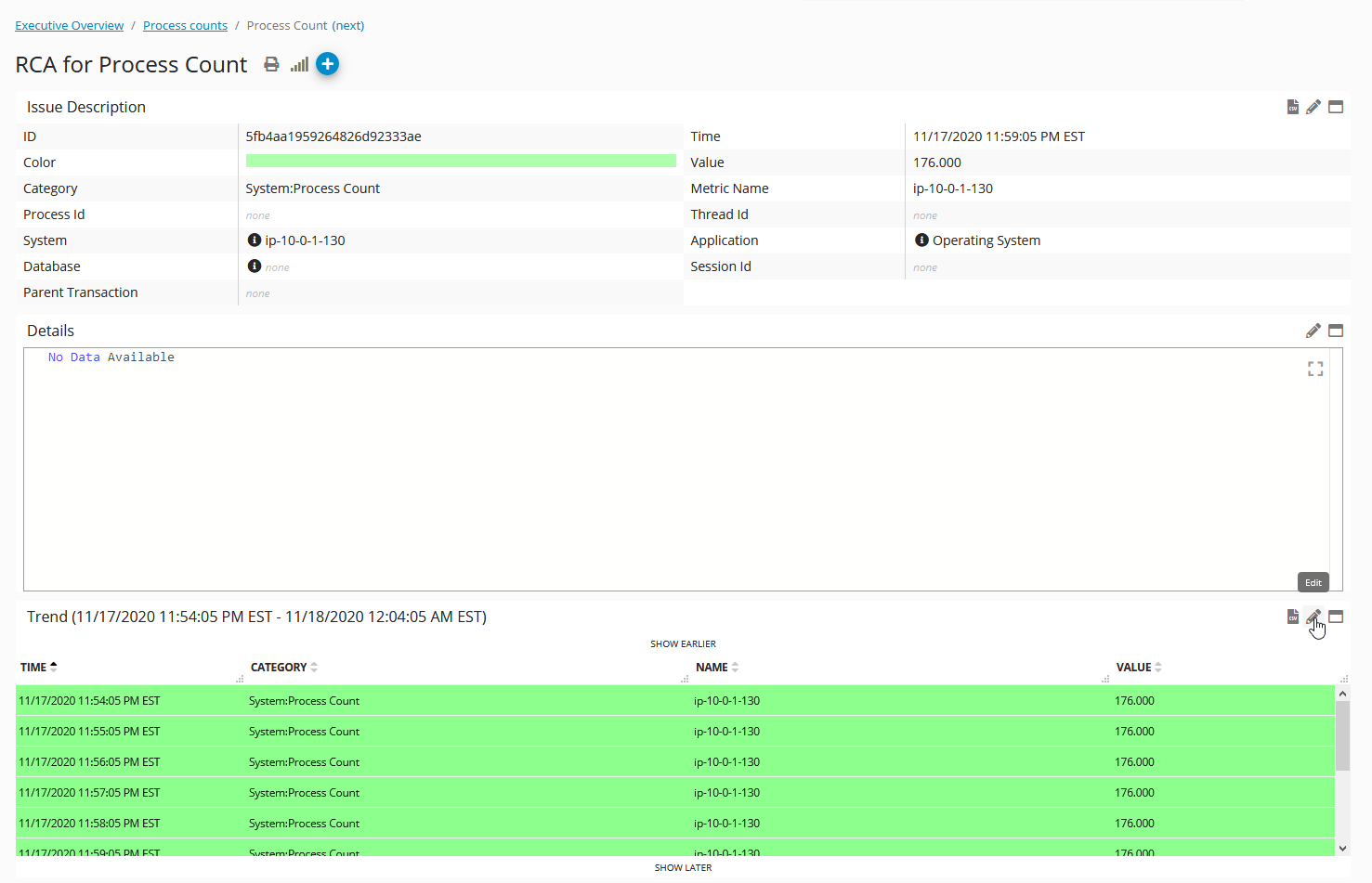 Review the change on the RCA Dashboard