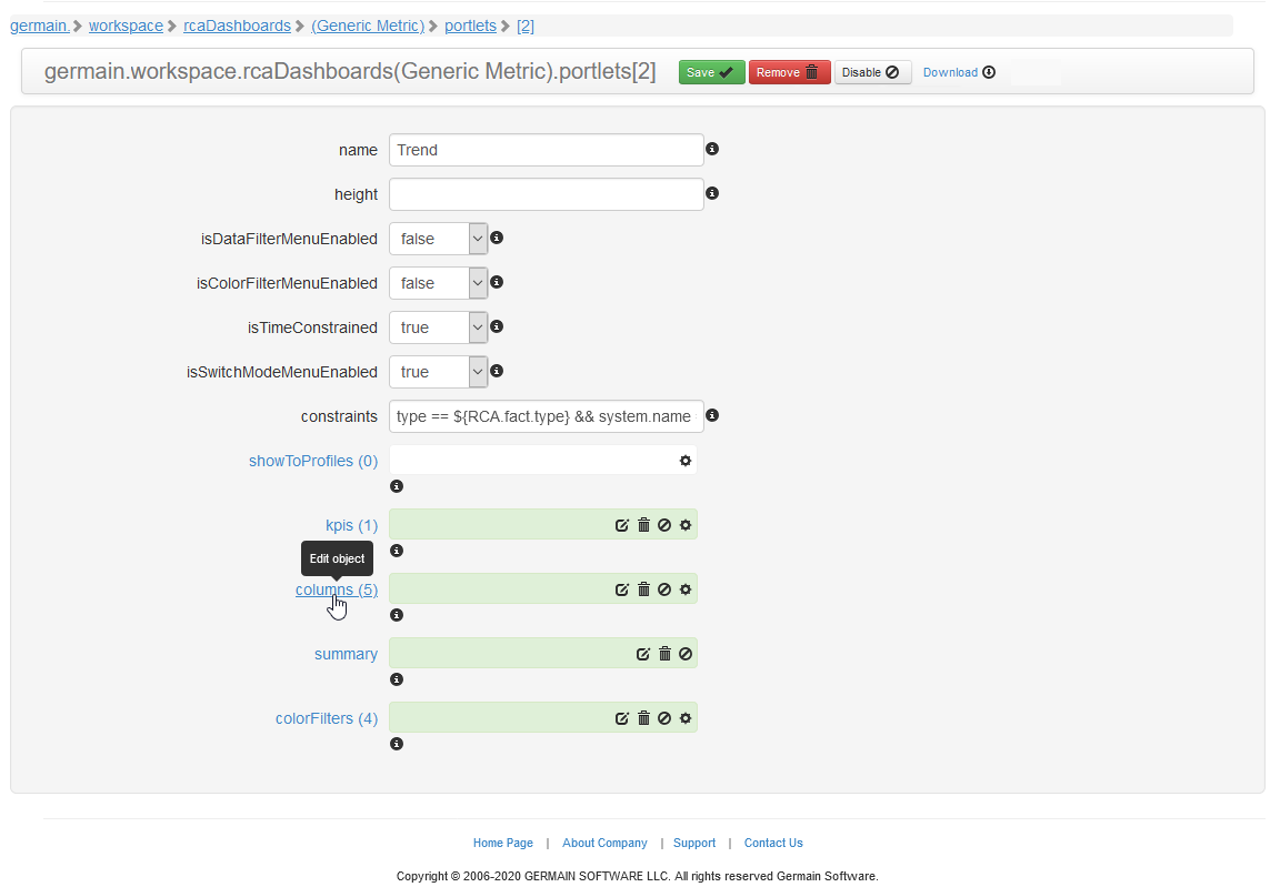 Edit Metric/Portlet - Germain UX