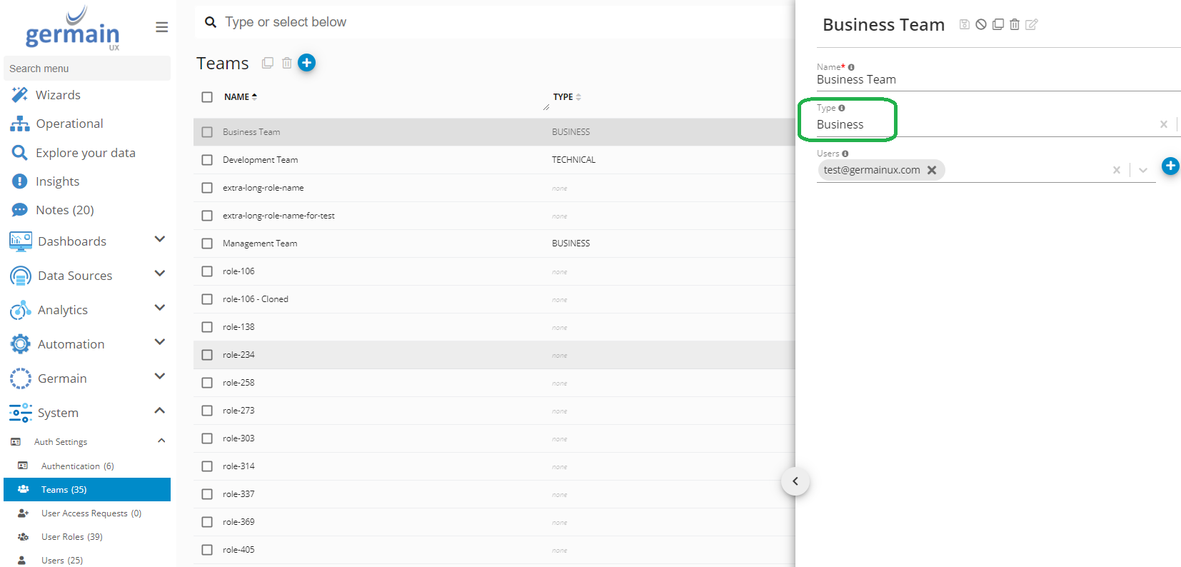 Business Impact view at scale example - Germain UX