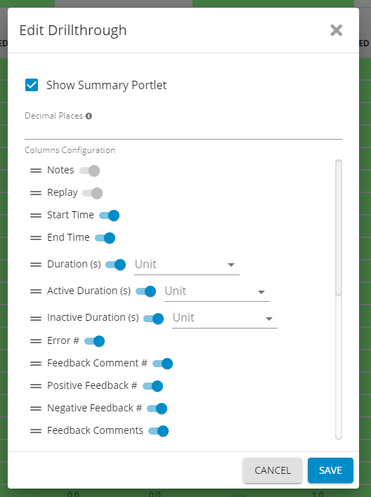 3 Drilldowns come by default on all aggregate dashboards: Pivot, Drill-through or RCA Dashboard