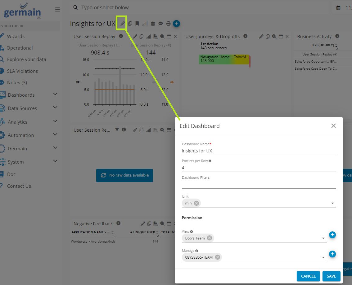 Edit button on Operational Dashboard - Germain UX