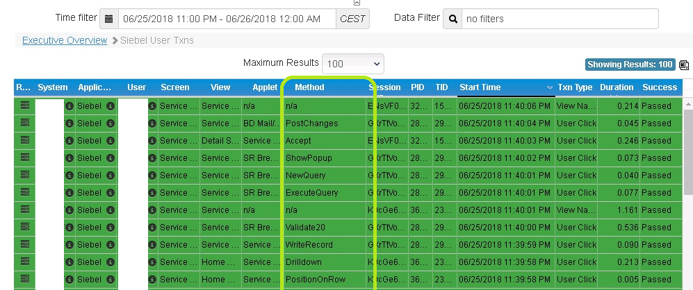 Siebel Methods (triggered as a result of a user click and other backend processing, and executed within the siebel application server/om side) are now available by default on all siebel-specific Germain drillthrough and rca dashboard (including Germain's siebel OM crash RCA dashboard). Siebel Methods were available ever since 2014 but that insight wasn't preconfigured (new installs of Germain were missing it).