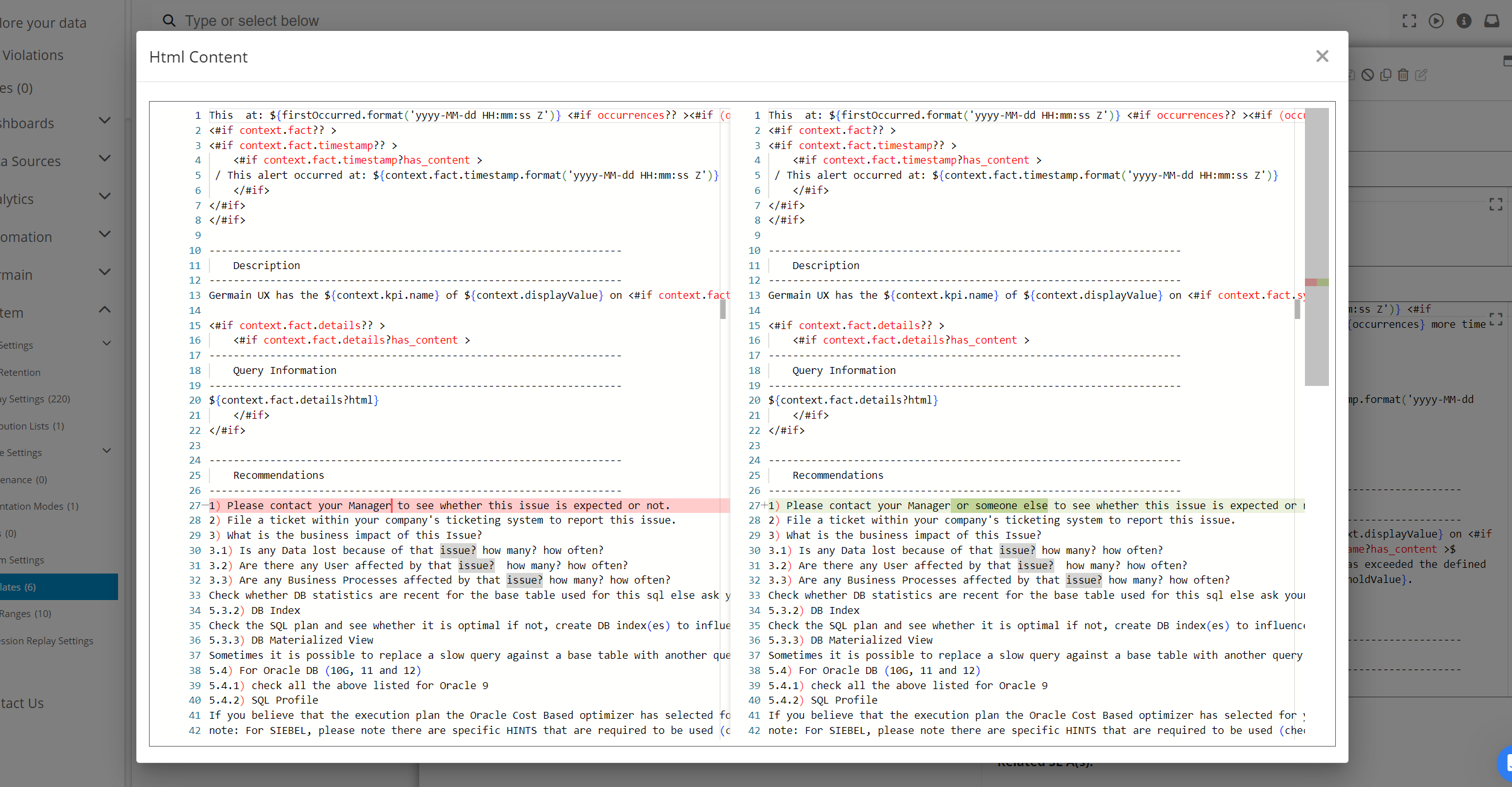 Differences between two version of a Template - Germain UX