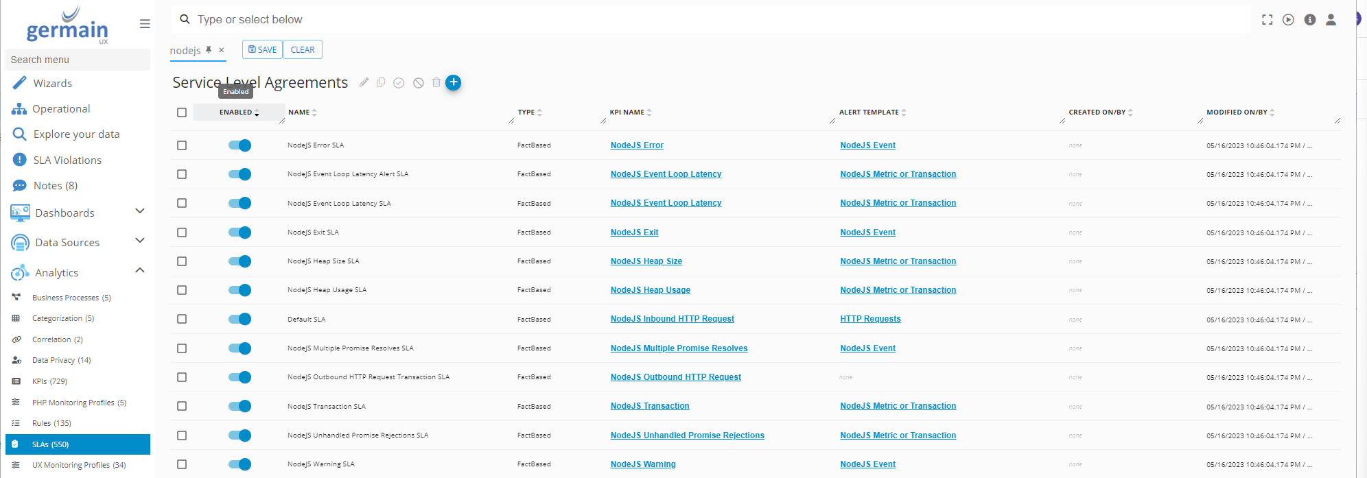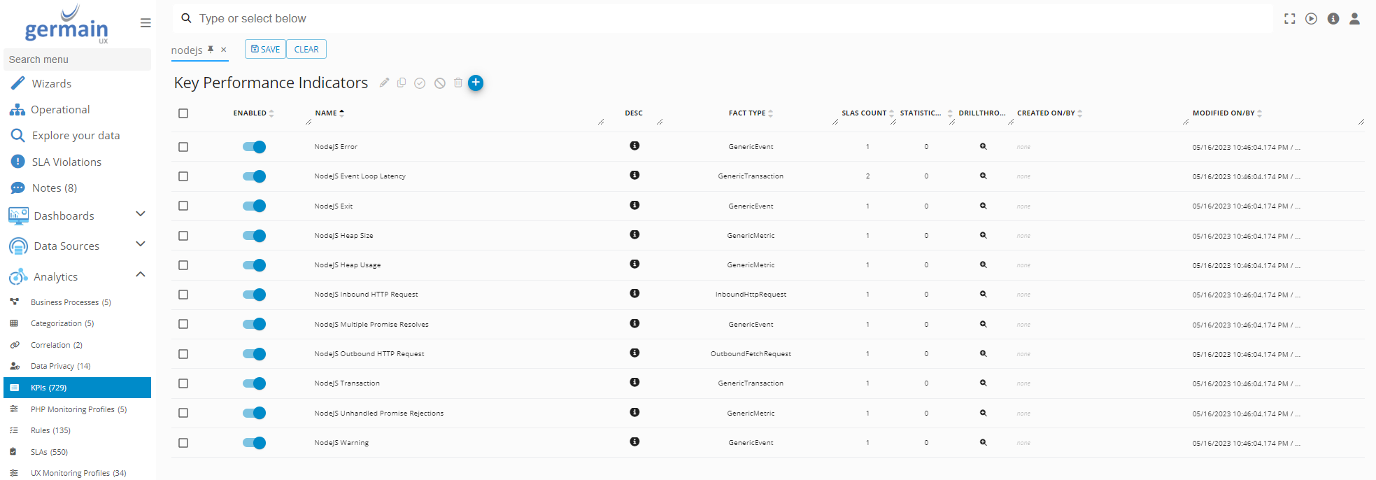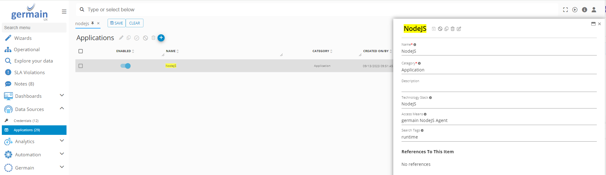 Enable any Node.js data source you want Germain UX to collect/analyze data from or execute transaction into.