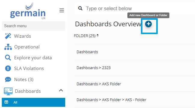 Add new Dashboard or Folder on ALL view of Germain UX