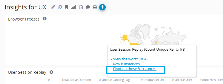 Existing Pivot Dashboards are either accessible by moving your mouse over any metrics on any Aggregate Dashboard and select <Pivot on..>: