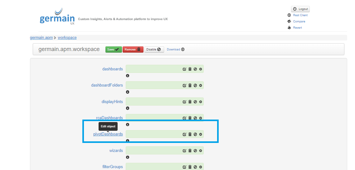 Edit Pivot Dashboard via Workspace - Germain UX