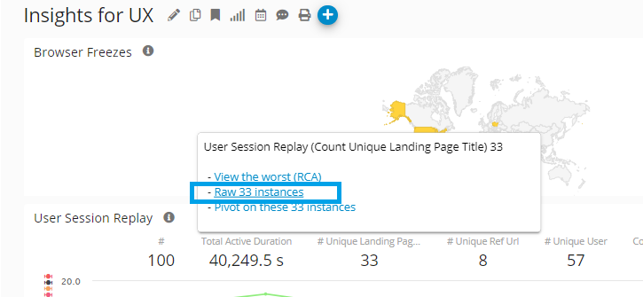 Existing Drillthrough Dashboards are either accessible by moving your mouse over any metrics on any Aggregate Dashboard, and select <Raw…>: