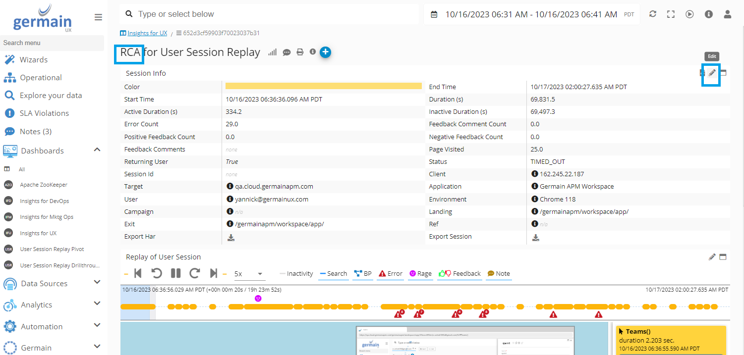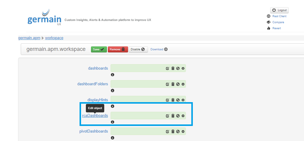 Edit RCA Dashboard via Workspace - Germain UX