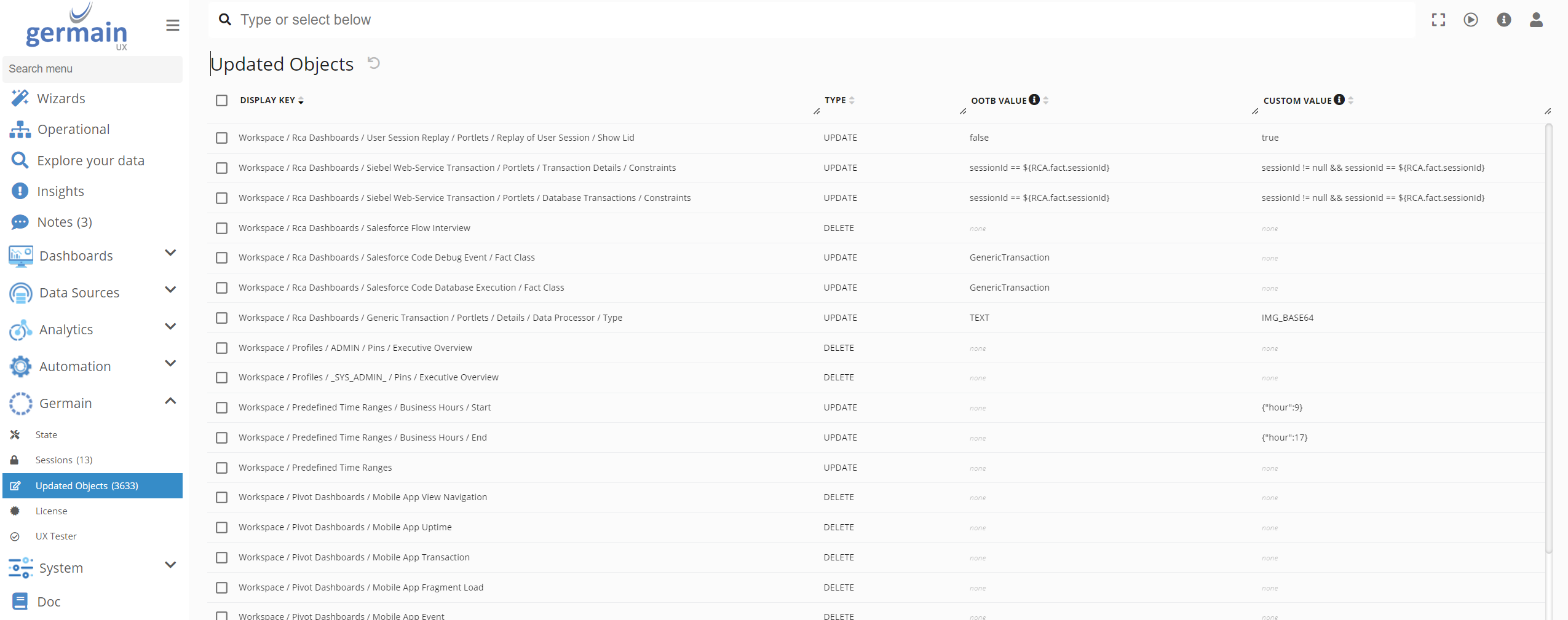 After completing an upgrade of Germain UX, it is essential to validate any customizations that were built before the upgrade to ensure their continued functionality with the new version of Germain UX. This can be accomplished using the Updated Objects screen below, which facilitates faster and smoother upgrades.