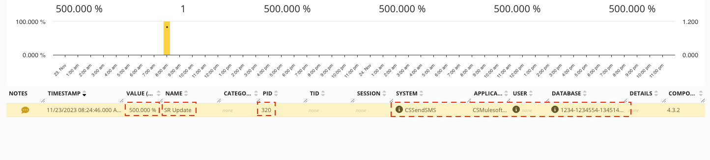 The following example creates a data point in GermainUX each time a “SR Update” occurs in Mulesoft.