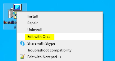 Once installed, you can open ORCA by right clicking on the Germain .NET Profiler .msi file and choose “Edit with Orca”
