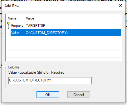 Go to the Property table and add the property “TARGETDIR” with your choice of directory for the value.