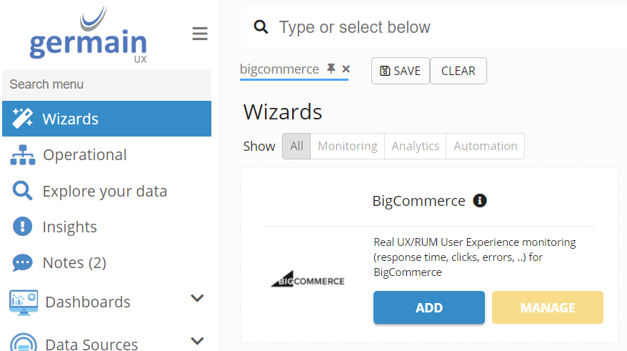 BigCommerce health, usage, troubleshooting and enhancement - via Germain UX Engine