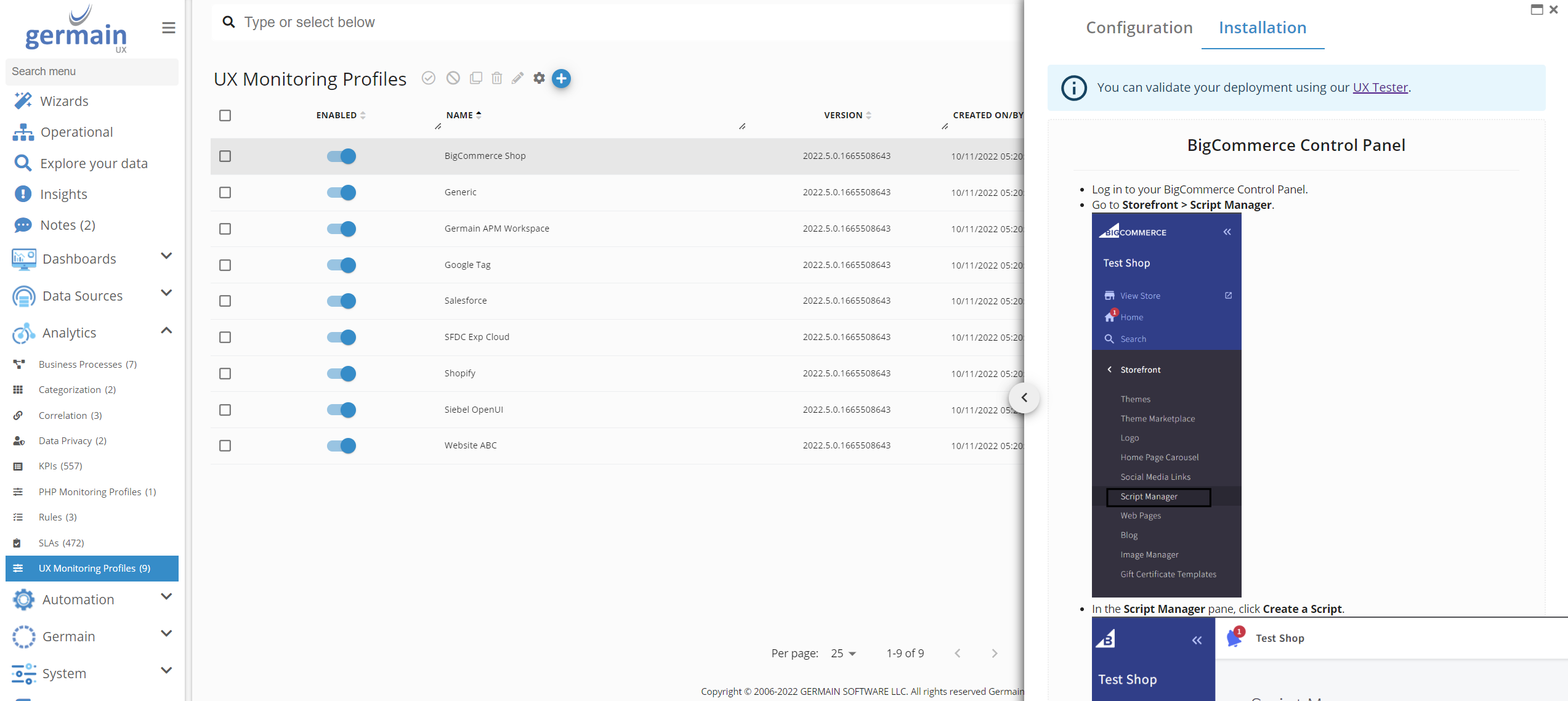 Steps for deploying Germain UX's monitoring for BigCommerce.
