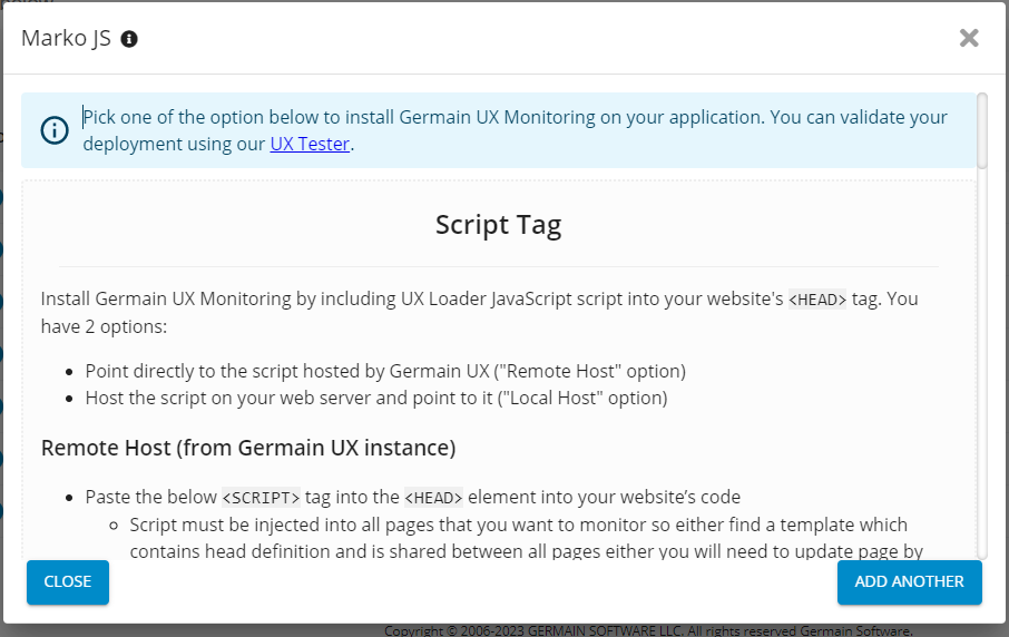 Steps for deploying Germain UX's monitoring for MarkoJS.