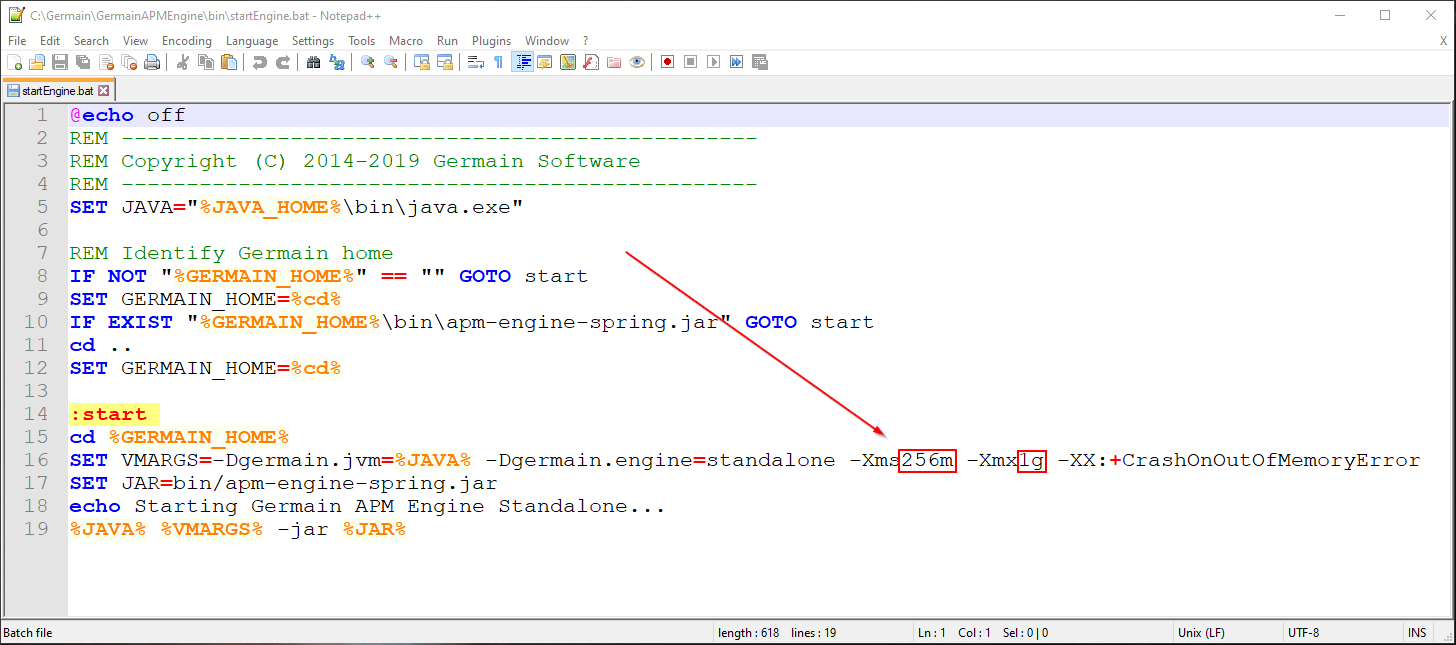 startEngine.batand validate/set JVM memory settings.Screenshot of settings in script:
