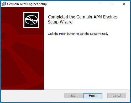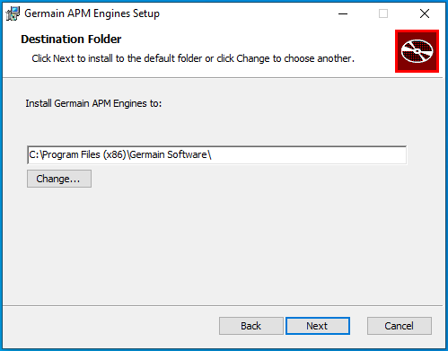 | (Optional): You can set the path of where you would like to install the Germain Engine. Default is ‘C:\Program Files (x86)\Germain Software\’. |