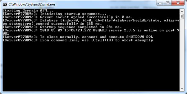 CODE2021-12-03 12:49:13,744 INFO BootstrapConfigService - Bootstrapping config from: C:\Program Files (x86)\Germain Software\GermainAPMEngines - [main] 2021-12-03 12:49:13,760 INFO BootstrapConfigService - Classpath: bin/apm-engine-manager.jar - [main] 2021-12-03 12:49:13,869 INFO ConfigurationServiceClient - Connecting to: http://qa.germainux.com - [main] 2021-12-03 12:49:13,869 INFO EngineManagerConfigService - Getting node configuration for hostname: DESKTOP-87C7TD9 - [main] 2021-12-03 12:49:15,353 INFO AuthenticationClient - Requesting new session cookie for: DESKTOP-87C7TD9 - [main] 2021-12-03 12:49:15,713 INFO AuthenticationClient - Writing sessionID to file: C:\Program Files (x86)\Germain Software\GermainAPMEngines\config\session.txt - [main] 2021-12-03 12:49:17,150 WARN AuthenticationClient - === Authorization test [1] failed. Please check the APM State view to authenticate this node. Retrying in 60 seconds === - [main] 2021-12-03 12:50:17,369 WARN AuthenticationClient - === Authorization test [2] failed. Please check the APM State view to authenticate this node. Retrying in 60 seconds === - [main] 2021-12-03 12:51:18,416 WARN AuthenticationClient - === Authorization test [3] failed. Please check the APM State view to authenticate this node. Retrying in 60 seconds === - [main] 2021-12-03 12:52:18,666 WARN AuthenticationClient - === Authorization test [4] failed. Please check the APM State view to authenticate this node. Retrying in 60 seconds === - [main] 2021-12-03 12:53:18,869 WARN AuthenticationClient - === Authorization test [5] failed. Please check the APM State view to authenticate this node. Retrying in 60 seconds === - [main] 2021-12-03 12:54:19,104 INFO AuthenticationClient - Authorization test [6] successful. - [main] 2021-12-03 12:54:19,728 INFO EngineMetricService - Initializing engine metric service. - [main] 2021-12-03 12:54:20,010 INFO AbstractQueueProxyFactory - Mapping queue '_APM_DATA_QUEUE' to 'apm.storage' - [main] 2021-12-03 12:54:20,010 INFO AbstractQueueProxyFactory - Mapping queue '_APM_DOCUMENT_AUDIT' to 'apm.documentAudit' - [main] 2021-12-03 12:54:20,010 INFO AbstractQueueProxyFactory - Mapping queue '_APM_ACTION_QUEUE' to 'apm.action' - [main] 2021-12-03 12:54:20,010 INFO HttpQueueProxyFactory - Initializing HttpQueueProxyFactory. - [main] 2021-12-03 12:54:20,510 INFO EngineManagerService - Starting engine manager... - [main] 2021-12-03 12:54:20,791 INFO StateStoreServer - Creating new hsqldb server: {server.database.0="file:database/hsqldb/state", server.dbname.0="APM_STATESTORE"} - [main] 2021-12-03 12:54:20,806 INFO StateStoreServer - Starting hsqldb server instance. - [main] 2021-12-03 12:54:21,353 INFO ENGINE - checkpointClose start - [HSQLDB Server @5e63cad] 2021-12-03 12:54:21,353 INFO ENGINE - checkpointClose synched - [HSQLDB Server @5e63cad] 2021-12-03 12:54:21,369 INFO ENGINE - checkpointClose script done - [HSQLDB Server @5e63cad] 2021-12-03 12:54:21,400 INFO ENGINE - checkpointClose end - [HSQLDB Server @5e63cad] 2021-12-03 12:54:21,604 INFO EngineManagerApplication - Started EngineManagerApplication in 311.715 seconds (JVM running for 313.42) - [main] 2021-12-03 12:54:31,619 INFO EngineManagerService - Engine Manager heartbeat... - [scheduler-2]