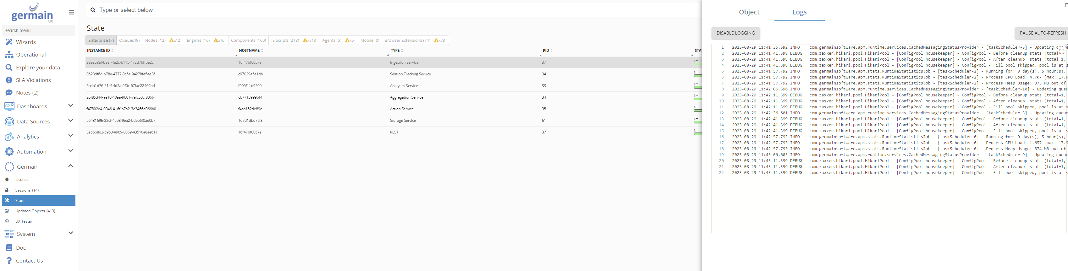 Troubleshoot Germain Enterprise, Engines or Nodes