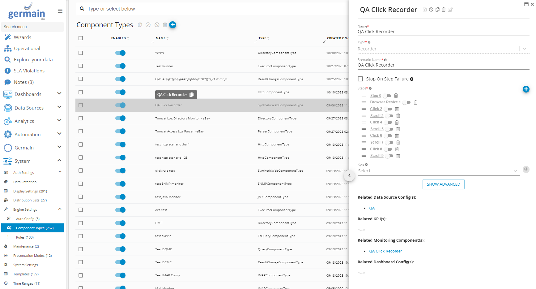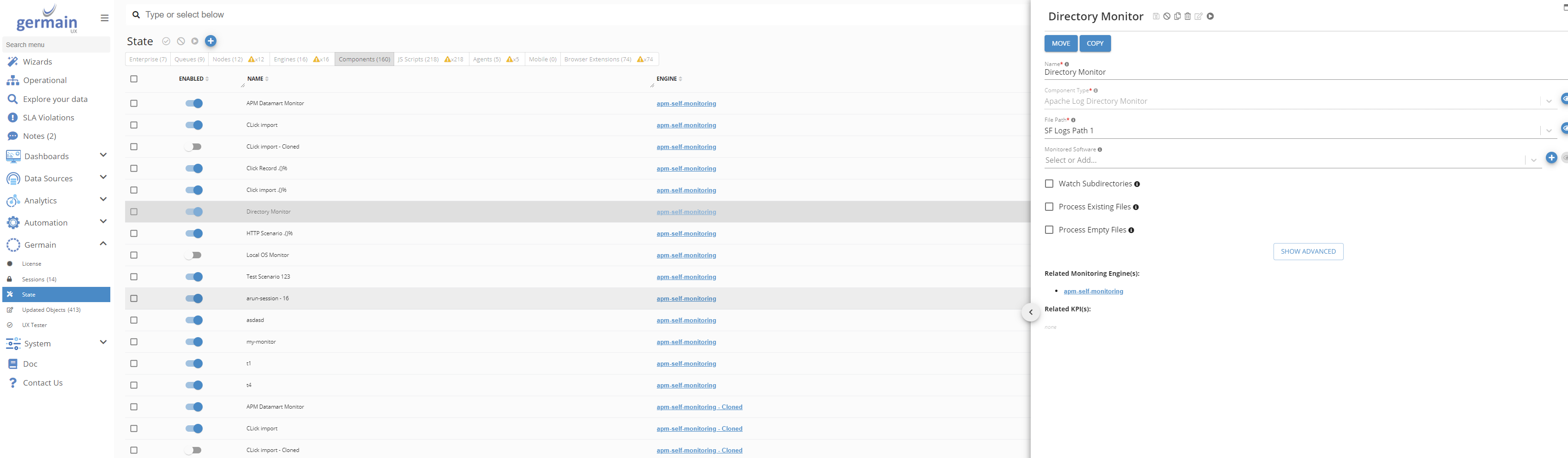 Use Components tab on Germain State dashboard to manage Germain Components Instances. Ability to remotely deploy, update Germain Components.