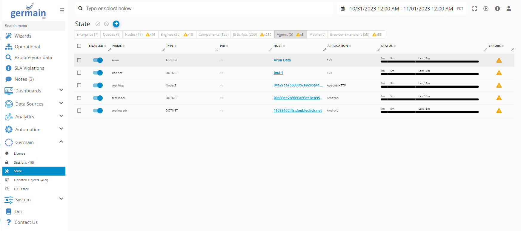 Use Agent tab on Germain State dashboard to manage Agents.