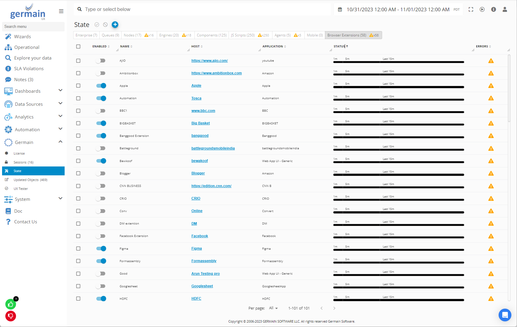 From Germain UX Sentinel (our self-monitoring tool).