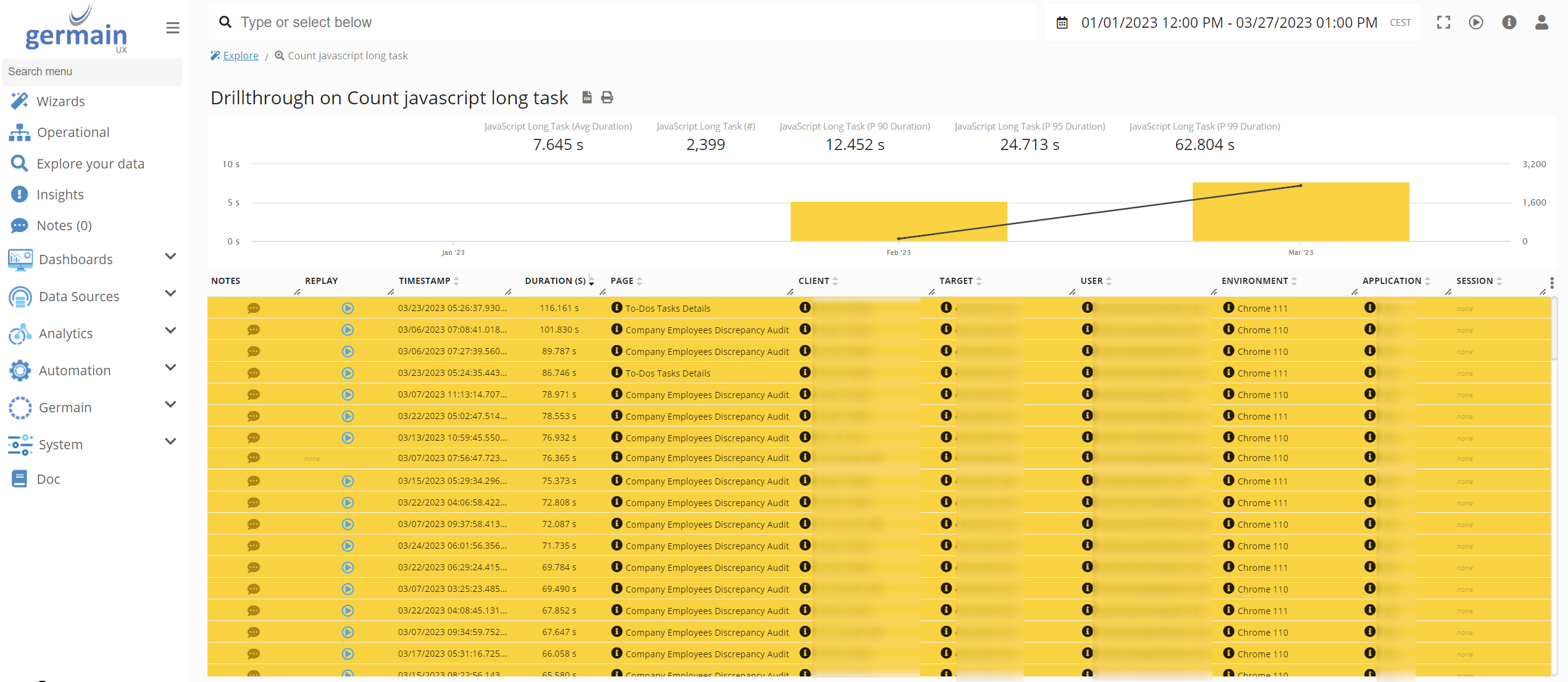 Javascript Long Task - Browser Freeze on Replay of User Session dashboard - Germain UX