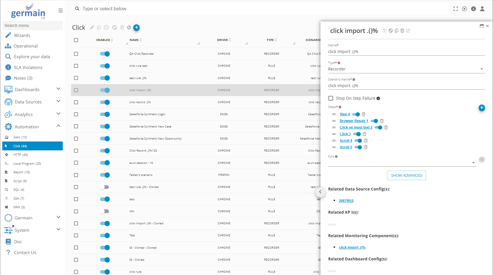 Germain enables proactive issue detection that affects Magento users, applications, or integrations in real-time, 24/7. This is achieved through various automation mechanisms, including RPA Bots (e.g., Selenium).