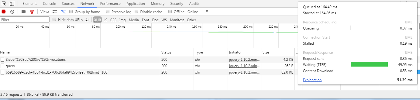 Click on "Drill-through" (of Germain dashboard) on "Siebel Svc Txns" portlet takes 0.051 second